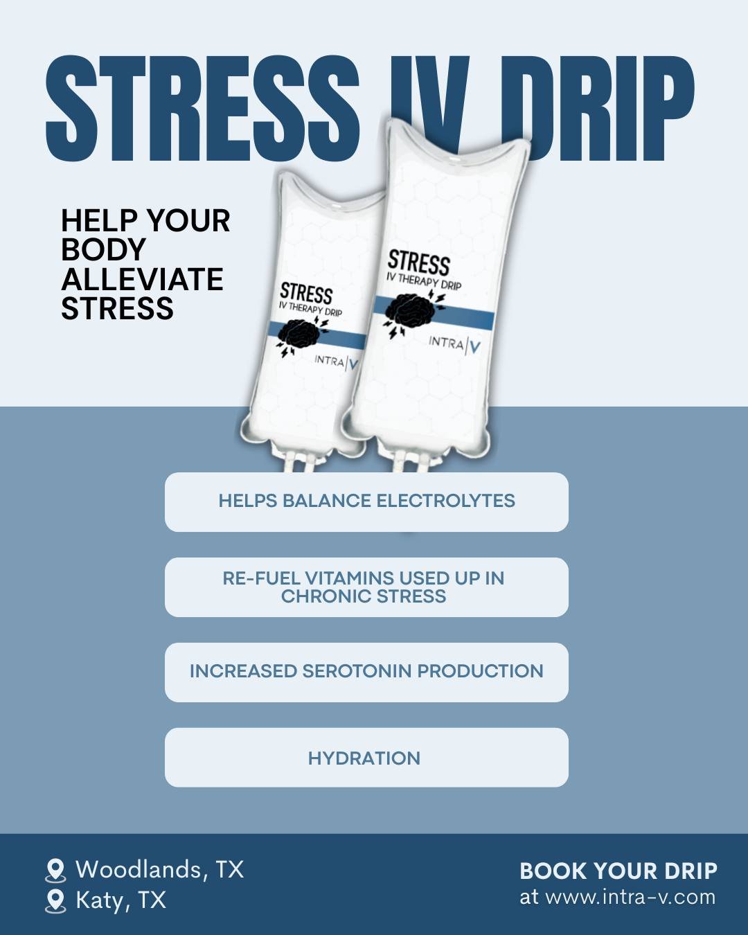 We love to stay connected with our clientele who have benefited from the health and wellness services we offer at our Woodlands and Katy TX vitamin infusion locations. Give us a follow to stay up to date on all things INTRA|V!
