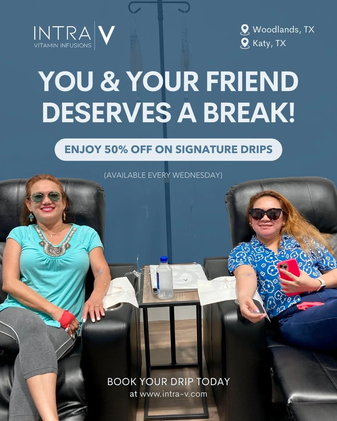 With locations in Katy and The Woodlands, Intra-V makes it easy to access advanced IV therapy and wellness services in a comfortable and professional setting.