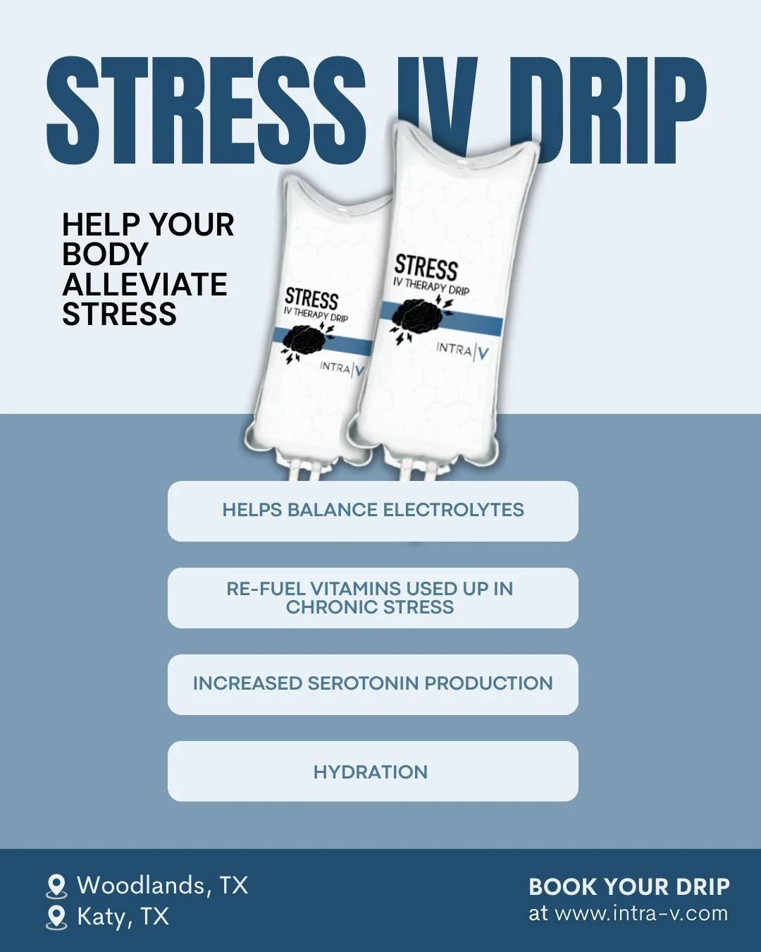 With locations in The Woodlands, Spring, and Cinco Ranch, Katy, we have been open since the start of 2017. We were one of the first IV bars in the Houston and greater Houston area.